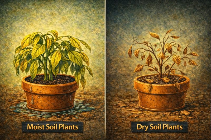 Air conditioners, heaters, and fans also dry the soil quickly.