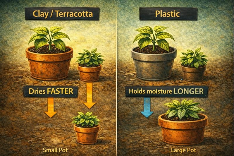 • Clay or terracotta pots dry faster