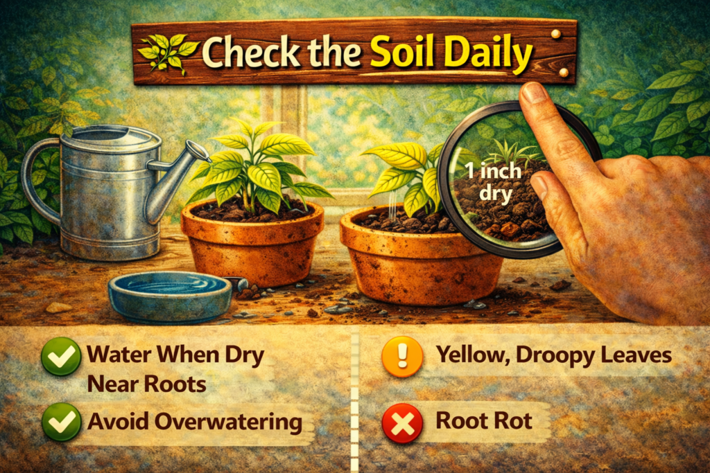 I once watered my plant every three days because the top soil looked dry. I thought I was caring. In reality, I was drowning it.