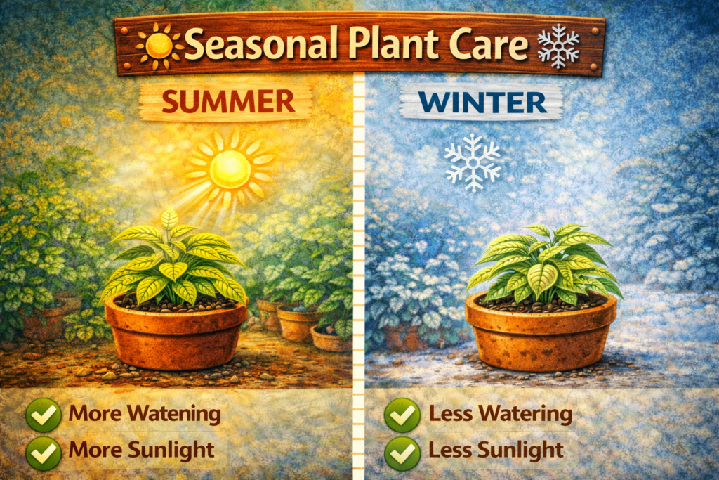 I remember one summer, my living room felt perfect. Soft sunlight in the morning, curtains open, floor clean, chai in my hand. My plant was green, no yellow leaves, no drooping. But weeks passed. Nothing changed. No new leaf. No height. Just… stuck.